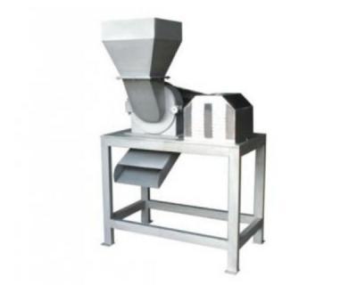 該機(jī)由機(jī)架、傳動(dòng)罩、軸承座、機(jī)身、進(jìn)料斗、定子、轉(zhuǎn)子、刀片、大側(cè)蓋、出料斗、鉸鏈、電機(jī)罩等部件組成。適用于蘋果、梨、西紅柿、根類等果蔬破碎(核果類除外)。工作時(shí)電機(jī)帶動(dòng)主軸旋轉(zhuǎn)。由前道工序升運(yùn)上來(lái)的物料落入進(jìn)料斗中,物料進(jìn)入機(jī)身后由于轉(zhuǎn)子上的筋板帶動(dòng)物料高速旋轉(zhuǎn),定子上的刀排將物料進(jìn)行破碎(刀排可兩面使用),此時(shí)物料一般粒度在4-8mm左右(可根據(jù)刀排的齒距、定子的槽寬及轉(zhuǎn)速而定),破碎后的物料從定子上的腰形孔中落入至出料口。