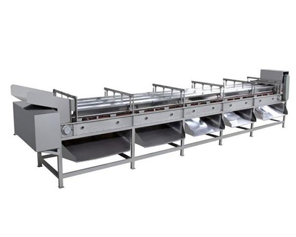 簡(jiǎn)介— 該設(shè)備是利用“〇”型輸送帶與分級(jí)傳動(dòng)軸之間的間隙大小來(lái)達(dá)到分級(jí)的目的。該機(jī)結(jié)構(gòu)新穎,分級(jí)精度高,產(chǎn)能大, 對(duì)水果表面無(wú)損傷等特點(diǎn)。適用于蘋(píng)果、梨、橙子等圓果類的分級(jí)。