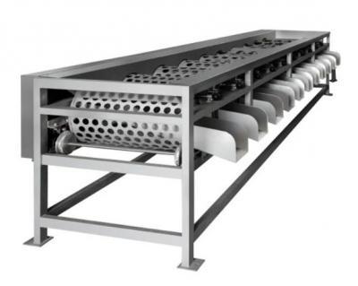 本設備是全不銹鋼果蔬分選機械,是由上果輸送機和滾杠式分選機組成;上果輸送機通過滾杠自動旋轉(zhuǎn)來達到均勻上料,滾杠式分級機根據(jù)果蔬直徑大小來分選;