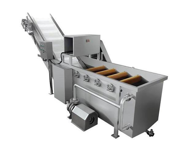 該設備是利用物料在水泡的作用下翻滾,在毛刷輥旋轉的作用下對物料表面刷洗、去毛發、去雜等。本機適用于葉菜類刷洗。