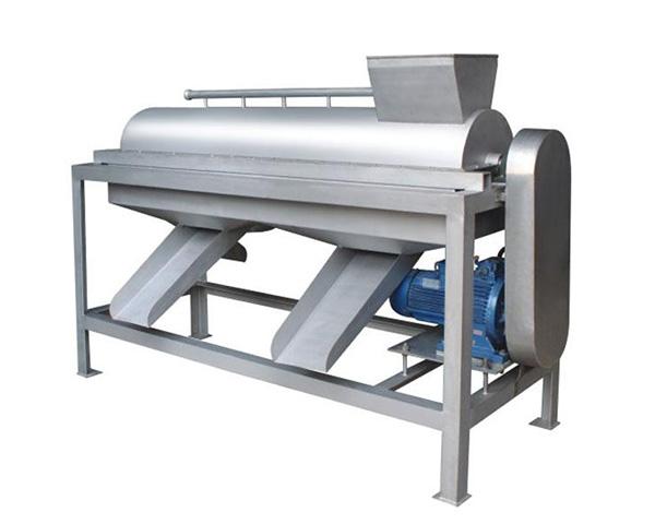 該設備主要用于核果類的核肉分離。例如:橄欖、青梅、李子、杏子、桃等。水果通過轉子上不同角度的分離板,得到塊狀果肉,從篩網孔中落入出料斗,核由數個分離板組成的螺旋,向出核處排出。篩網和分離板之間的間隙,視處理物 料核的大小而定。